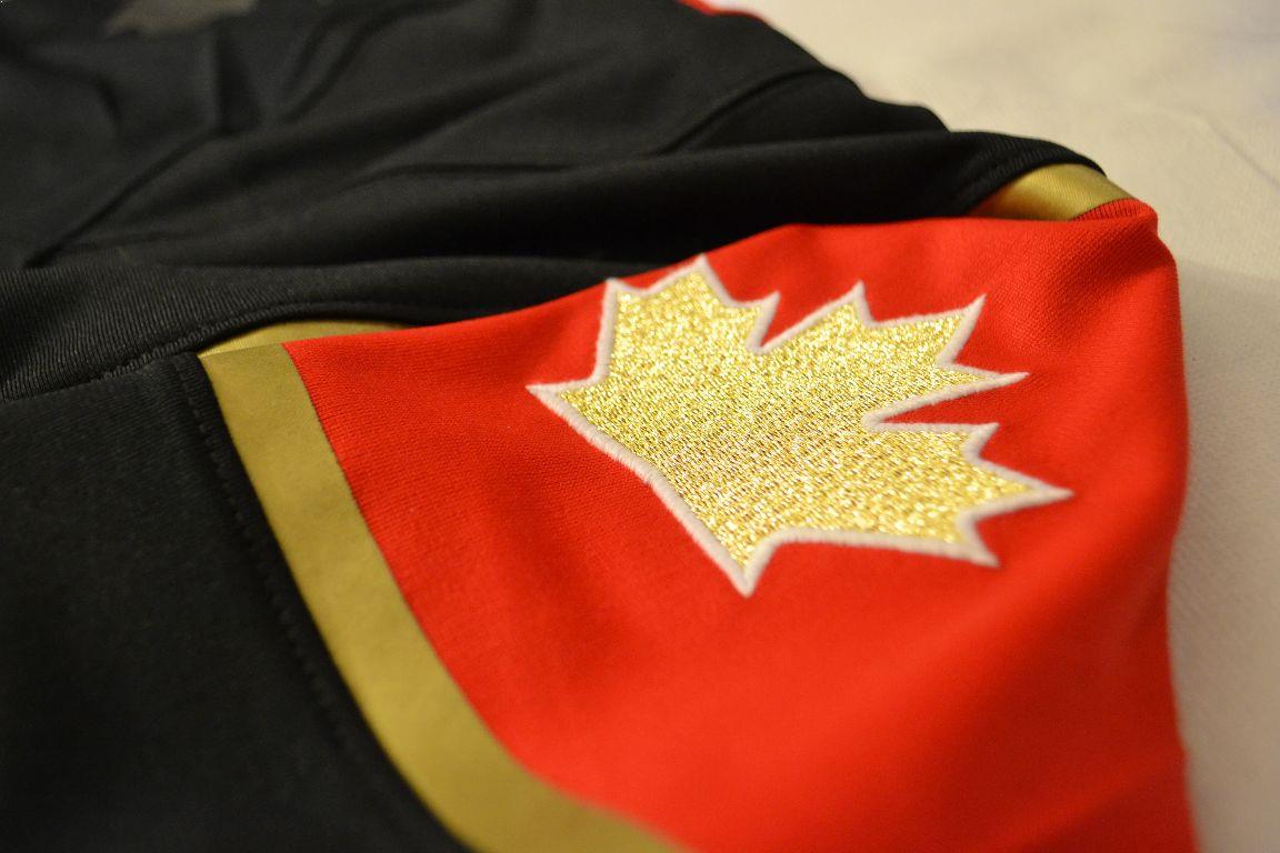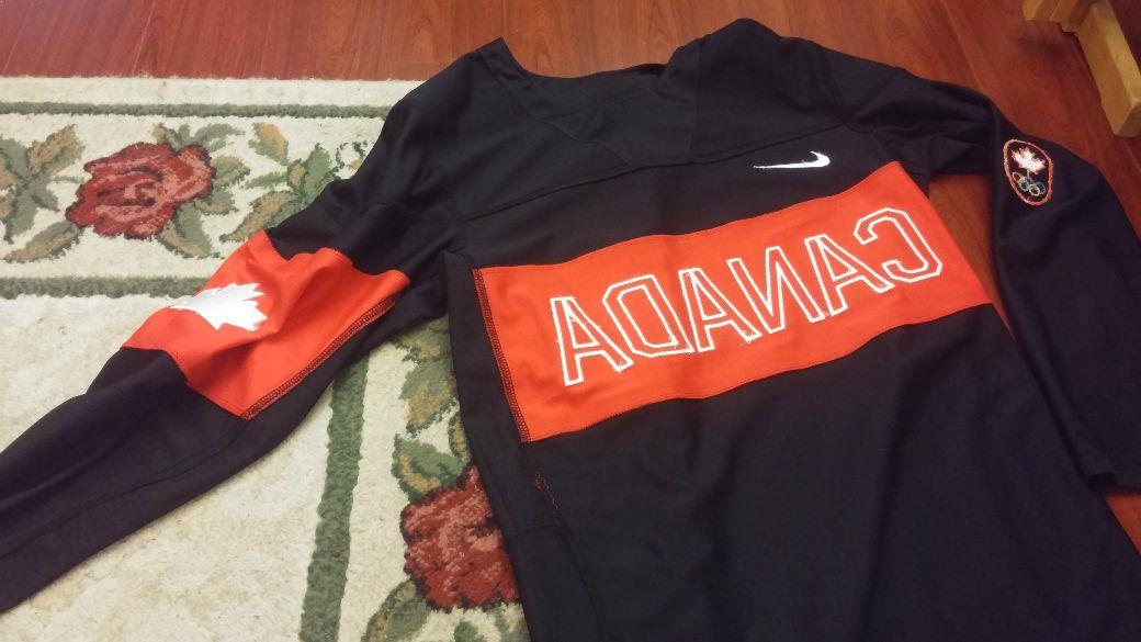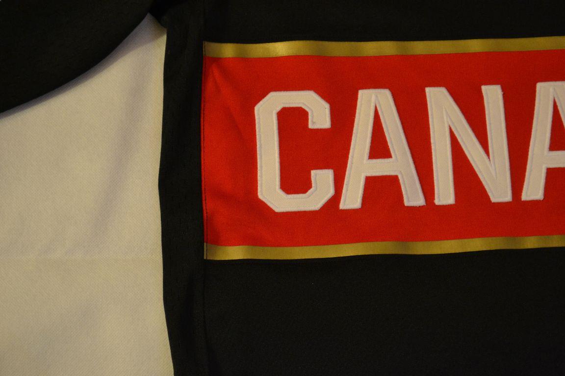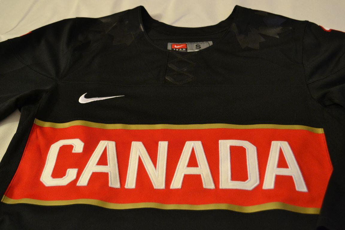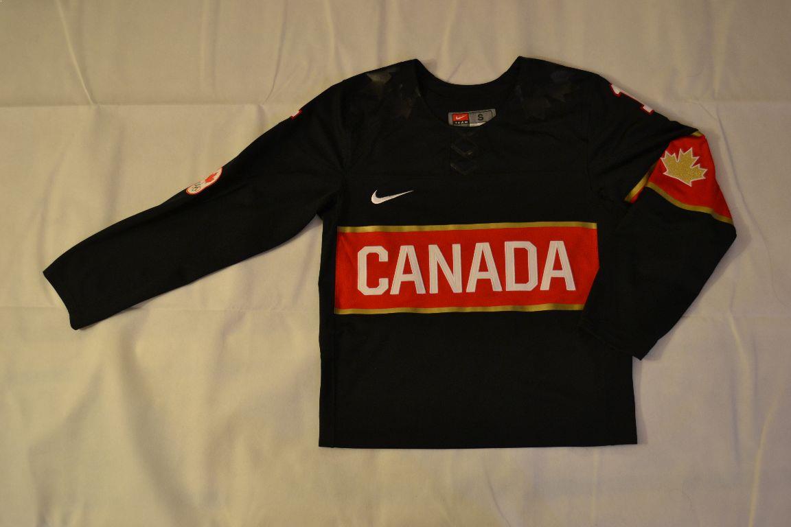 This predominantly black jersey was used as Team Canada’s alternate for the 2014 Winter Olympics in Sochi. It featured a red stripe lined with gold (which we won in that tournament) across the chest and left sleeve. Inside the stripe was “CANADA” and a golden maple leaf, while the Canadian Olympic Committee logo was placed on the right sleeve. This jersey was worn for one round-robin game against Austria, as we beat them 6-0.
